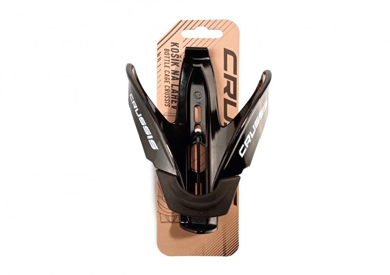 Barevně ladící košík na láhev – černý Nastavitelná gumová koncovka tlumí vibrace Odolná a pružná konstrukce, balení včetně šroubků. Vhodný pro koloběžky, elektrokola i klasická jízdní kola. Pro elektrokola CRUSSIS s přípravou na montáž košíku doporučujeme použít 0,5 l láhev. Materiál: TERMOPLAST Hmotnost: 44 g