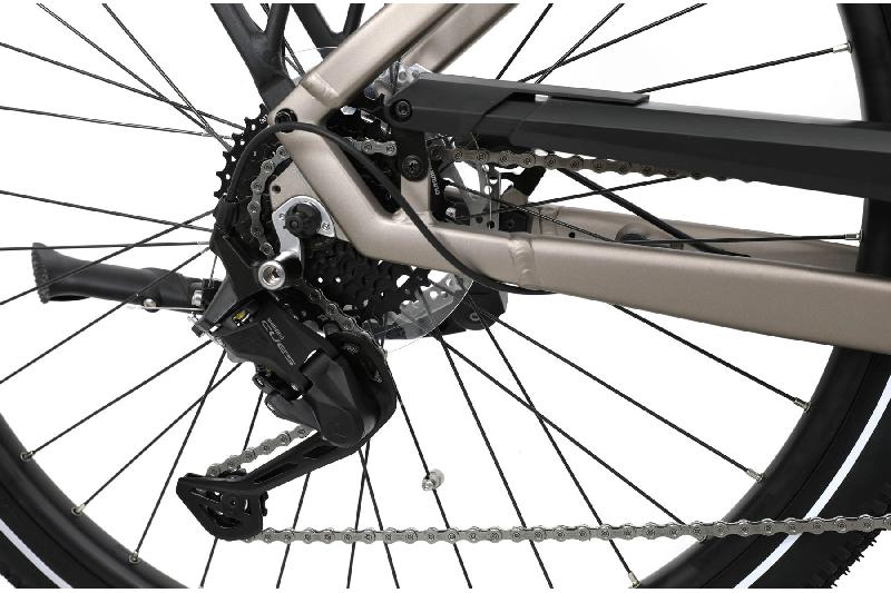 Středový motor Bafang M410 80Nm s tlakovým senzorem, který reaguje na sílu šlápnutí. Čím silněji se zatlačí do pedálu, tím více motor pomáhá. Když se šlape zlehka, motor pomáhá jen nepatrně, když se zatlačí do pedálu silně, motor pomůže maximálním výkonem. Díky tlakovému senzoru je jízda na elektrokole podobná jízdě na obyčejném kole, nestane se, že by motor zabral, když to jezdec nečeká. Středový motor je obvykle výkonnější než běžné motory (250W) v zadním kole.