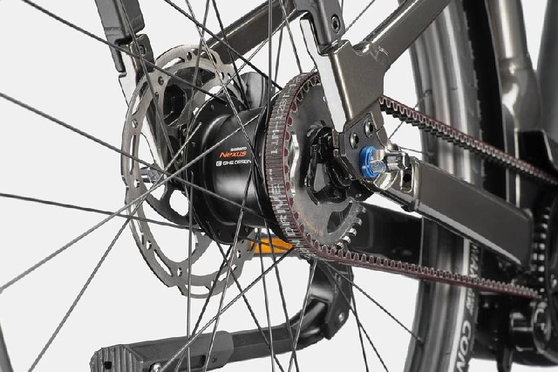 Náboje (F) Shimano TC500, 15x110mm thru-axle / (R) Shimano Nexus i5e, internal gear hub, 5-speed