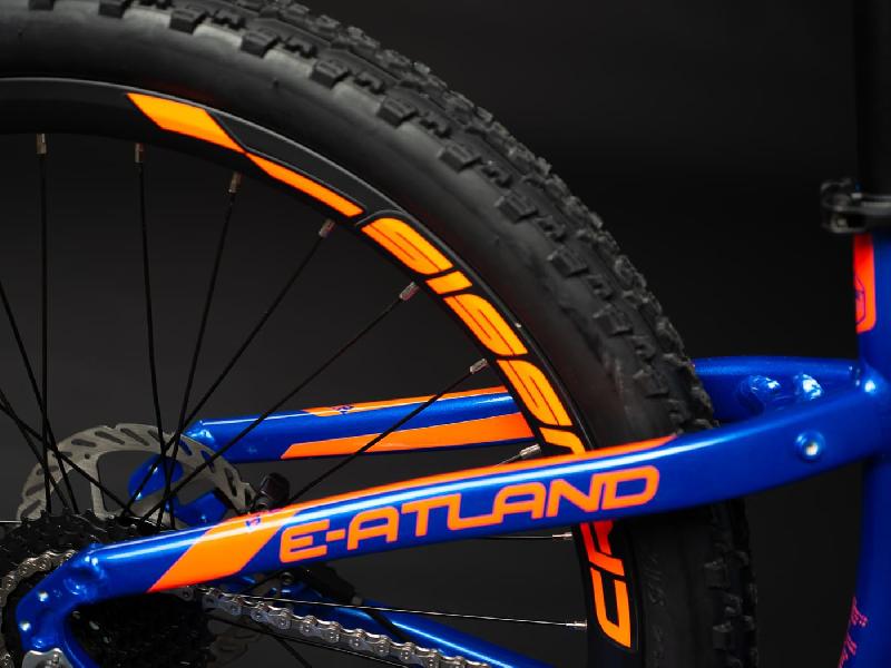 Elektrokolo má sportovní design v moderním výrazném modrém provedení s reflexními oranžovými prvky (pro lepší viditelnost) a na atraktivnosti přidává integrovaná vyndávací baterie v rámu.