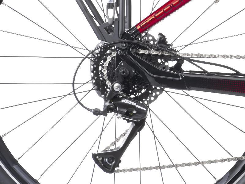 Městské elektrokolo CRUSSIS e-Country 7.10-(720 Wh) 2025 má hliníkový alu 6061 rám v barvě ČERVENÁ, ČERNÁ. Moderní vestavěná baterie LG Li-Ion 36V / 720 Wh (20 Ah) umocňuje sportovní vzhled elektrokola. Baterie je vyndávací a je možné ji nabíjet jak na kole tak i mimo kolo. Městské elektrokolo e-Country 7.10-(720 Wh) má usb konektor, který můžete využít například pro nabíjení telefonu nebo navigace. Součástí je 4a (součást výbavy).Středový motor PANASONIC GX Power Plus 75Nm s tlakovým senzorem, který reaguje na sílu šlápnutí. Čím silněji se zatlačí do pedálu, tím více motor pomáhá. Když se šlape zlehka, motor pomáhá jen nepatrně, když se zatlačí do pedálu silně, motor pomůže maximálním výkonem. Díky tlakovému senzoru je jízda na elektrokole podobná jízdě na obyčejném kole, nestane se, že by motor zabral, když to jezdec nečeká. Středový motor je obvykle výkonnější než běžné motory (250W) v zadním kole.