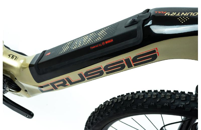 Elektrokolo CRUSSIS e-Country full 11.9 je opravdový skvost na 27,5" kolech nabitý nejmodernějšími e-bikovými technologiemi. Je postaveno na celoodpruženém hliníkovém rámu o velikostech 17“, 19" a 21“. Silný elektromotor BOSCH Performance Line CX - Smart System o výkonu 250W-800W, s kroutícím momentem 85 Nm, jemuž po cestách i terénu dodává energii baterie BOSCH PowerTube 625Wh (16,7Ah) nabízí supr dojezd až 180km – zde samozřejmě vždy záleží na profilu trati, váze jezdce a způsobu využití asistence. Tu ovládáte pomocí ovládacího panelu BOSCH Kiox 300 – displej zobrazuje stav baterie, zvolený stupeň asistence elektromotoru, rychlost a ujetou vzdálenost a mnoho dalších informací. Samozřejmostí je vybavení baterie BMS deskou (Battery Management System), která ji chrání před přehřátím, zkratem nebo přebitím. Baterii můžete nabíjet přímo v rámu elektrokola, nebo ji lze za účelem nabití vyjmout – nabít ji tak můžete doma pomocí přiložené nabíječky v jakékoliv standardní zásuvce. Zcela vybitou baterii nabijete do plné kapacity za cca 4 hodiny přiloženou 4A nabíječkou, která je u kola přiložena .