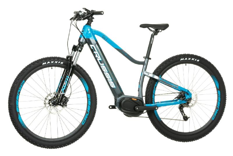Design vhodný jak pro muže tak ženy v šedé metalíze v kombinaci se světlou modrou barvou, to je horské elektrokolo CRUSSIS e-FIONNA 7.8-S (2023). Plně integrovaná (odnímatelná) silná značková baterie Panasonic 17,5Ah/630Wh je dostačující i pro delší výlety a je možné ji z kola snadno vyjmout pro nabíjení mimo kola nabíječkou 2A, která je součástí. Větší průměr kol 29" je ideální na dlouhé rovné cesty, kde dosahuje snadno velké rychlosti a v terénu lehce překonává nerovnosti. Větší průměr kol je čím dál oblíbenější, proto komu výška postavy dovolí, volí právě 29". Kola jsou obuta do bikových plášťů MAXXIS ARDENT 29 X 2,40, tudíž je zaručená výborná přilnavost elektrokola v terénu.