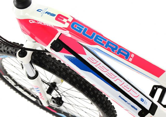 Elektrokolo má sportovní design v moderní velmi líbivé bílo růžové verzi s reflexními prvky (pro lepší viditelnost) a na atraktivnosti přidává plně integrovaná baterie v rámu o kapacitě 13 Ah.