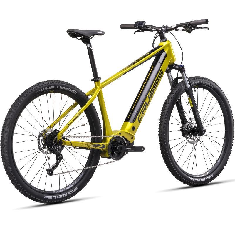 Horské elektrokolo CRUSSIS e-Largo 7.10-(720 Wh) 2025 má hliníkový alu 6061 rám v barvě ŽLUTÁ ČERNÁ. Moderní vestavěná baterie LG 20Ah 720Wh 36V Li-Ion umocňuje sportovní vzhled elektrokola. Baterie je vyndávací a je možné ji nabíjet jak na kole tak i mimo kolo. Horské elektrokolo e-Largo 7.10-(720 Wh) má usb konektor, který můžete využít například pro nabíjení telefonu nebo navigace. Součástí je 4a.Středový motor PANASONIC GX Power Plus 75Nm s tlakovým senzorem, který reaguje na sílu šlápnutí. Čím silněji se zatlačí do pedálu, tím více motor pomáhá. Když se šlape zlehka, motor pomáhá jen nepatrně, když se zatlačí do pedálu silně, motor pomůže maximálním výkonem. Díky tlakovému senzoru je jízda na elektrokole podobná jízdě na obyčejném kole, nestane se, že by motor zabral, když to jezdec nečeká. Středový motor je obvykle výkonnější než běžné motory (250W) v zadním kole.