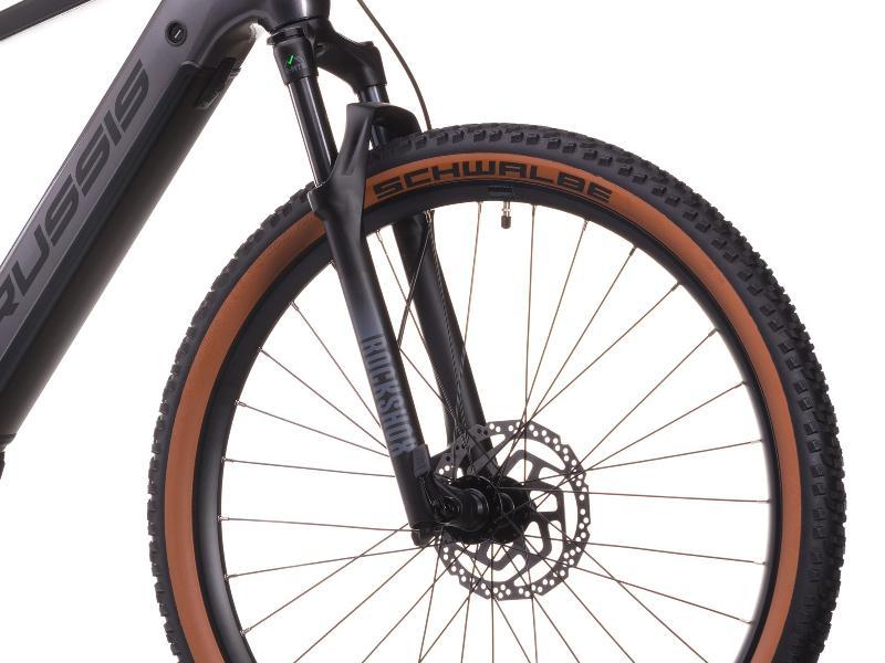CRUSSIS ONE-Largo 9.11-(715 Wh) 2026 má kola 29 palců a pláště SCHWALBE Smart Sam Performance 29 x 2,35. Brzdy hydraulické kotoučové SHIMANO Deore BR-MT410 180mm/160mm a o tlumení se stará vzduchová ROCKSHOX FS Judy Silver TK Solo Air 29 BOOST, zdvih 100mm, uzamykatelná z vidlice.
