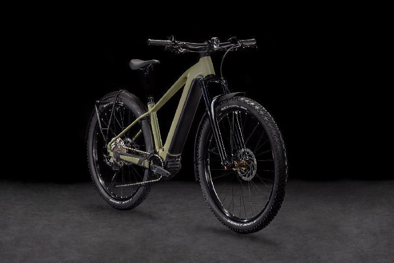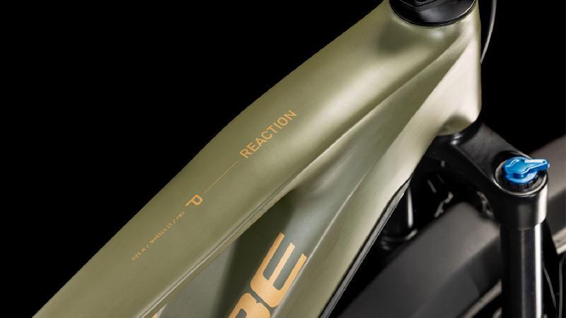 Horské elektrokolo CUBE Reaction Hybrid Pro Allroad 2025 má hliníkový rám v barvě DUSTYOLIVE-N-GOLD, kola 27,5 palců, středový motor Bosch Performance line CX 85Nm (100Nm) - 5.gen., baterii Bosch PowerTube 800, přehazovačku Shimano XT RD-M8100-SGS, ShadowPlus, 12 rychlostí, 10-51z, brzdy hydraulické kotoučové Shimano BR-MT200 180/180mm. Odpružení zajistí vidlice vzduchová SR Suntour X1-32 LO-R Air, Tapered, 15x110mm, 120mm (27,5: 100mm).