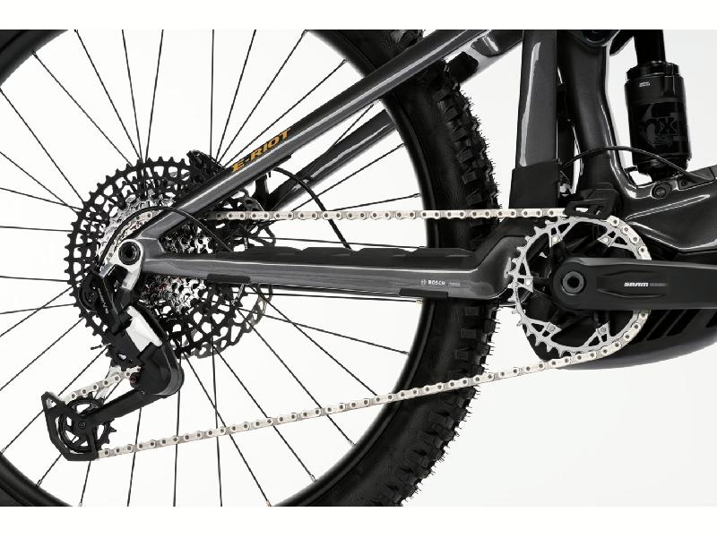 GHOST E-Riot CF Pro 2026 má kola 29/27,5 palců a pláště Continental Kryptotal-Fr Enduro Super Soft, TR, 60-622 / Continental Kryptotal-Re Downhill Soft, TR,. Brzdy hydraulické kotoučové Shimano Deore BR-M6120, 4 pistons, 220mm / Shimano Deore BR-M6120, 4 pistons, a o tlumení se stará vzduchová FOX 38 Float Performance eMTB+, GRIP, 3pos, 170mm, QR, Offset: 44mm, přední zdvih 170mm a tlumič Vzduchový FOX FLOAT X2 Performance, 2pos-Adj, 205x65mm, Trunnion, zadní zdvih 160mm.