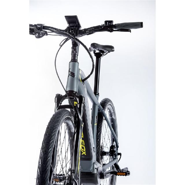 Elektrokolo má sportovní design v moderní šedé barvě s černo žlutými prvky a na atraktivnosti přidává zcela integrovaná baterie v rámu o kapacitě 17,5 Ah umožňující dlouhý dojezd na jedno nabití. Jako bonus je výstup USB, který můžete využít například pro nabíjení telefonu nebo navigace. Součástí je rychlo nabíječka s nabíjecím proudem 3A, díky které se výrazně zkrátí doba nabíjení (z 0 na 80% za cca 2,5 hodiny).
