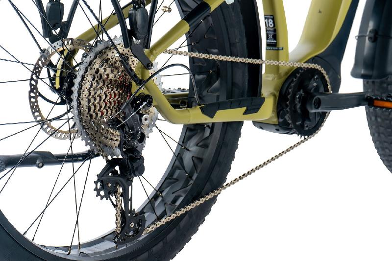 LEADER FOX BRASA 2024 má al6061 rám v barvě MILITARY, kola 26 palců, středový motor PANASONIC GX Ultimate 95Nm, baterii LG 36V/20Ah, Li-ion, 720Wh, přehazovačku SHIMANO DEORE RD-M5100, brzdy sHIMANO CUES U8000. Odpružení zajistí vidlice aIR, ZDVIH:120mm.