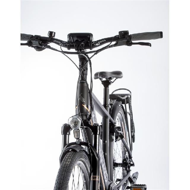 Elektrokolo má velmi povedený design v moderním matném provedení a na atraktivnosti přidává plně integrovaná nenápadná baterie v rámu o kapacitě 17,5 Ah s výstupem USB, který můžete využít například pro nabíjení telefonu nebo navigace. Součástí je rychlo nabíječka s nabíjecím proudem 3A, díky které se výrazně zkrátí doba nabíjení.