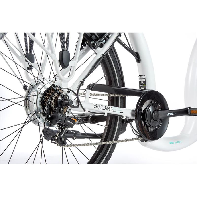 Elektrokolo HOLAND je již v základu vybaveno blatníky, předním a zadním LED osvětlením s vysokou svítivostí napojeným na baterii, praktickým zadním nosičem s nosností 15kg a stojánkem.