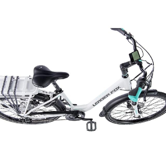 Městské elektrokolo Leader Fox LOTUS (2020) vyrobeno 06/2021 se značkovou baterií LG 16Ah/576Wh, sníženým nástupem a odpruženou vidlicí, kotoučovými brzdami a rozměrem kol 26“ je vhodné pro svou snadnou ovladatelnost především do města. Toto elektrokolo je velmi oblíbené pro snadné nastupování a moderní design.