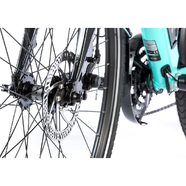 Elektrokolo má velmi povedený design v tyrkysové (mentolové) barvě s černými prvky.
