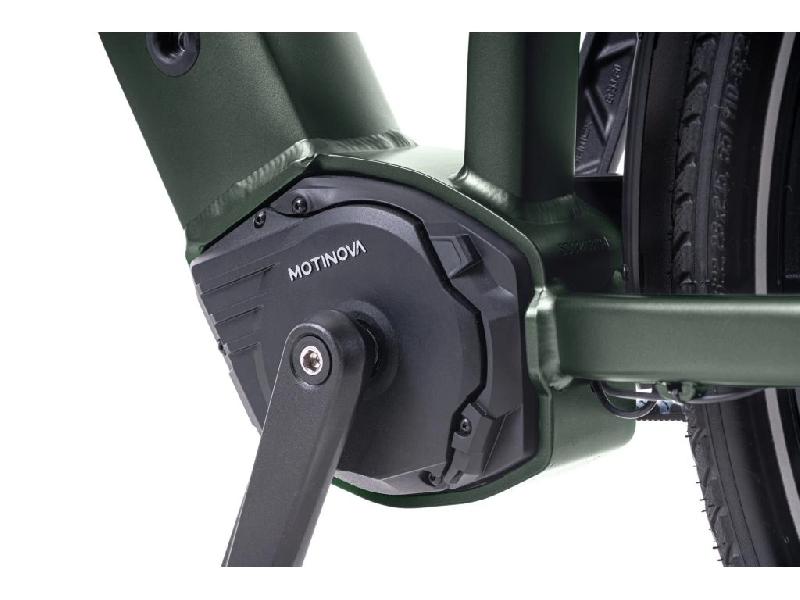 Středový motor Motinova Volans 65Nm s tlakovým senzorem, který reaguje na sílu šlápnutí. Čím silněji se zatlačí do pedálu, tím více motor pomáhá. Když se šlape zlehka, motor pomáhá jen nepatrně, když se zatlačí do pedálu silně, motor pomůže maximálním výkonem. Díky tlakovému senzoru je jízda na elektrokole podobná jízdě na obyčejném kole, nestane se, že by motor zabral, když to jezdec nečeká. Středový motor je obvykle výkonnější než běžné motory (250W) v zadním kole.