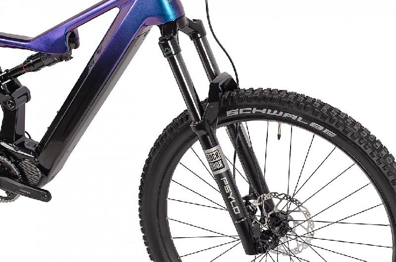 Celodpružené horské elektrokolo MAXBIKE HAKU radiant 2026 má karbonový rám v barvě VIOLET, kola 29 palců, středový motor SHIMANO EP8 85Nm, baterii BT-EN806 630Wh, 17,5Ah, 36V , přehazovačku Shimano Cues RD-U6000, 11 rychlostí, 11-50z, brzdy hydraulické kotoučové Shimano MT420, Shimnano SMRT54M, 180mm, V-Brake. Odpružení zajistí vidlice vzduchová RockShox PSYLO Silver RC, 160mm zdvih a tlumič vzduchový RockShox Deluxe Select R.