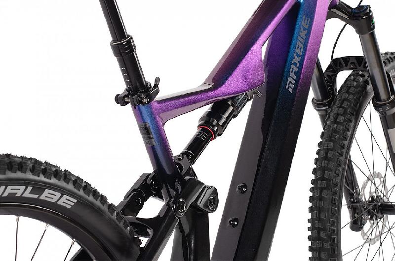 Celodpružené horské elektrokolo MAXBIKE HAKU radiant 2026 má karbonový rám v barvě VIOLET. Moderní vestavěná baterie BT-EN806 630Wh, 17,5Ah, 36V umocňuje sportovní vzhled elektrokola. Baterie je vyndávací a je možné ji nabíjet jak na kole tak i mimo kolo. Celodpružené horské elektrokolo HAKU radiant má usb konektor, který můžete využít například pro nabíjení telefonu nebo navigace. Součástí je 4a.