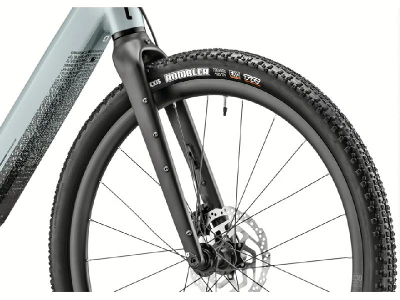 MOUSTACHE Samedi Dimanche 29.2 Gravel 2026 má kola 28 palců a pláště Maxxis Rambler 700x50C Tanwall. Brzdy hydraulické kotoučové Shimano CUES, brzdové kotouče 180mm / 180mm a o tlumení se stará pevná hliníková gravel vidlice Moustache OEM.