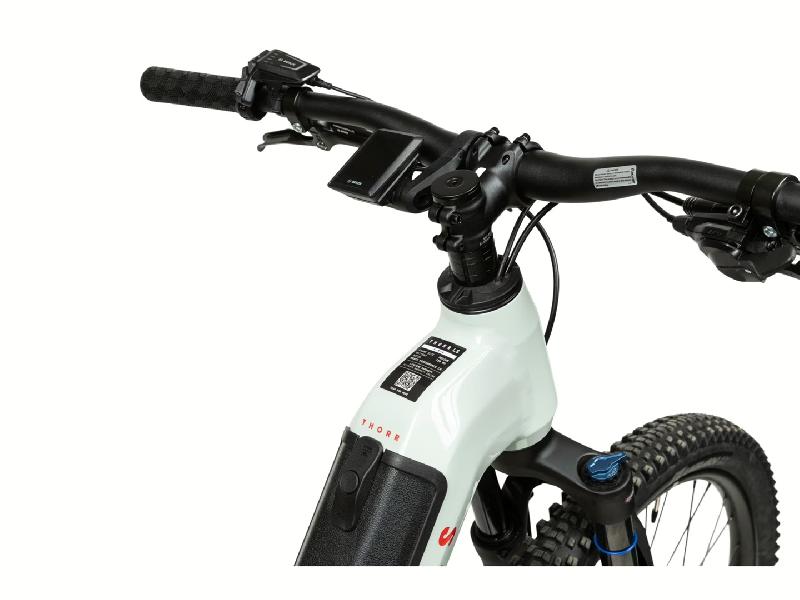 Horské nízkonástupové elektrokolo PELLS Thorr Bosch Lowstep 2026 má hliníkový rám v barvě CREAM / RED, kola 29 palců, středový motor Bosch Performance line CX 85Nm 4G - Smart system, baterii Bosch PowerTube 750Wh, 36V, přehazovačku Shimano Cues RD-U6000 GS, 10 rychlostí, 11-48z, brzdy hydaulické kotoučové Shimano BL-M200 / BR-MT200, 180mm/160mm. Odpružení zajistí vidlice vzduchová SR Suntour XCM Air Boost 100mm travel LOR.