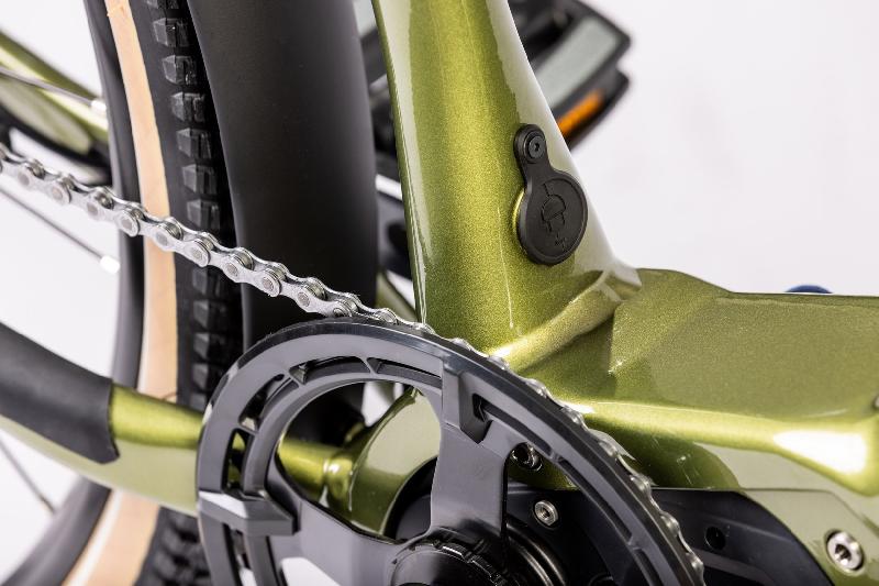 Gravel elektrokolo ROCK MACHINE Gravelride e500 Touring 2022 má hliníkový rám v barvě KHAKI / BLACK. Moderní vestavěná baterie Integrovaná Darfon, 504 Wh, 36 V umocňuje sportovní vzhled elektrokola. Baterie je vyndávací a je možné ji nabíjet jak na kole tak i mimo kolo. Gravel elektrokolo Gravelride e500 Touring nemá usb konektor pro nabíjení. Součástí je darfon 2a smart charger.