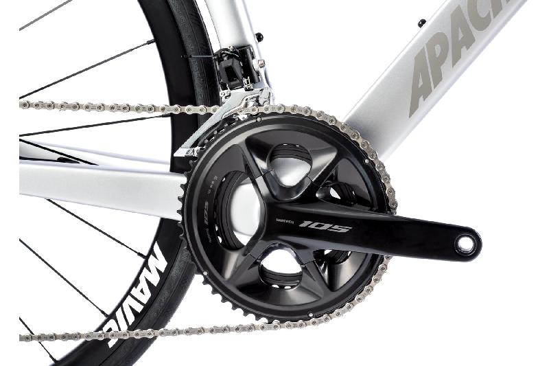 Kolo APACHE Gila RS3 je modelový rok 2024 v barvě STŘÍBRNÁ na kolech 28". Vidlice je na kole Pevná Apache Gila RS Carbon T1000, přehazovačka Shimano 105 RD-R7100, převody 2x12, 11-34z a řazení Shimano 105 ST-7120. Brzdy jsou Hydraulické kotoučové Shimano Ultegra BR-7170, Shimano SM-RT70 (140 / 160mm) a pláště Vittoria Zaffiro 28 × 622 kevlar.