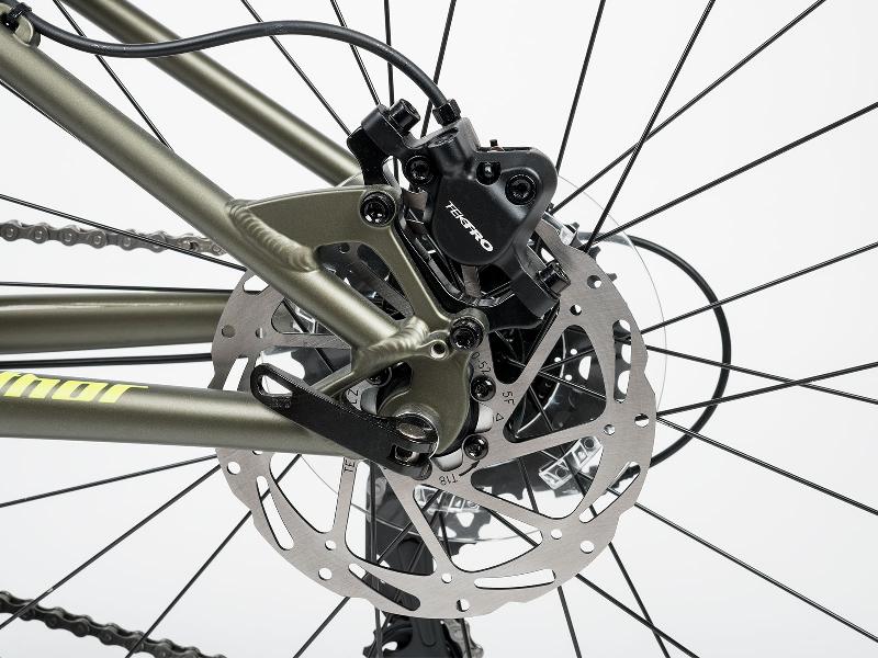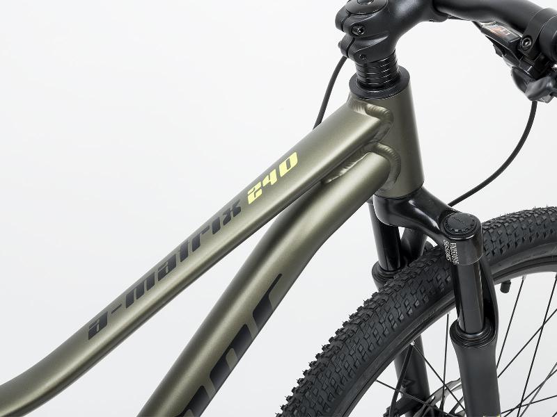Horské kolo AUTHOR A-MATRIX 24D má hliníkový rám v barvě ZELENOZLATÁ ČERNÁ LIMETA, kola 24 palců, přehazovačku SHIMANO TX800, 8 rychlostí, 11-34z a brzdy kotoučové hydraulické TEKTRO HD-J2820. Odpružení zajistí vidlice pružinová ZOOM 24 (50mm).
