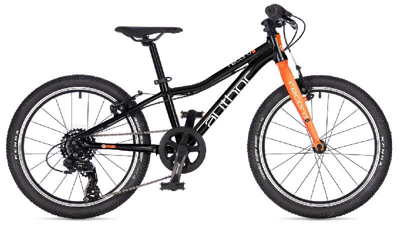 Dětské kolo AUTHOR RECORD 20 má hliníkový rám v barvě ČERNÁ ORANŽOVÁ, kola 20 palců, přehazovačku SHIMANO TY300 7 rychlostí 12-32z a brzdy Hydraulické kotoučové TEKTRO V . Odpružení zajistí vidlice pevná dural.