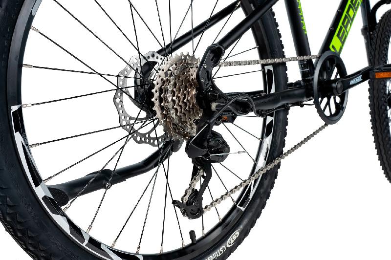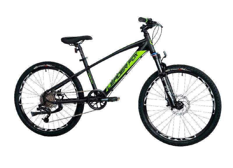 Horské kolo LEADER FOX CAPITAN 24 BOY má hliníkový rám v barvě ČERNÁ ZELENÁ, kola 24 palců, přehazovačku S-RIDE RD-M200 8 rychlostí 11-34z a brzdy mechanické kotoučové. Odpružení zajistí vidlice pružinová ZDVIH 100mm.