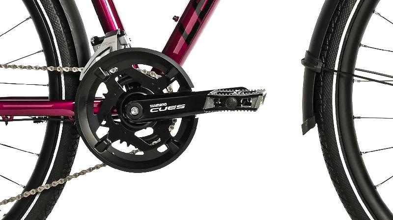 Trekové kolo LEADER FOX ESPIRIT 28 DÁMSKÝ má hliníkový rám v barvě VIOLET, kola 28 palců, přehazovačku SHIMANO CUES RD-U4020 9 RYCHLOSTÍ 11-41z a brzdy hydraulické kotoučové RIDEREVER 4 PÍSTOVÉ. Odpružení zajistí vidlice vzduchová ZDVIH 100mm.
