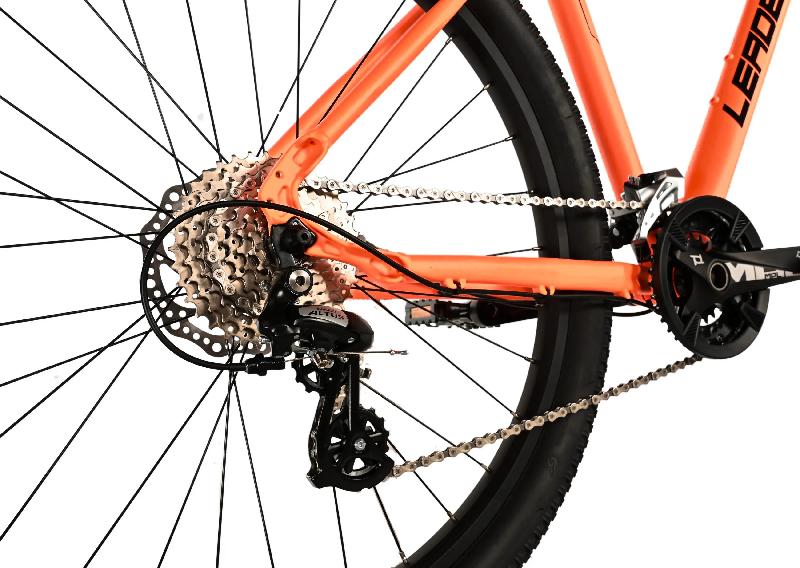 Horské kolo LEADER FOX EVOLUTION 27,5 má hliníkový rám v barvě NEONOVĚ ORANŽOVÁ, kola 27,5 palců, přehazovačku SHIMANO ALTUS RD-M310-L 8 RYCHLOSTÍ 11-36z a brzdy hydraulické kotoučové SHIMANO MT200. Odpružení zajistí vidlice pružinová zdvih 100 mm.