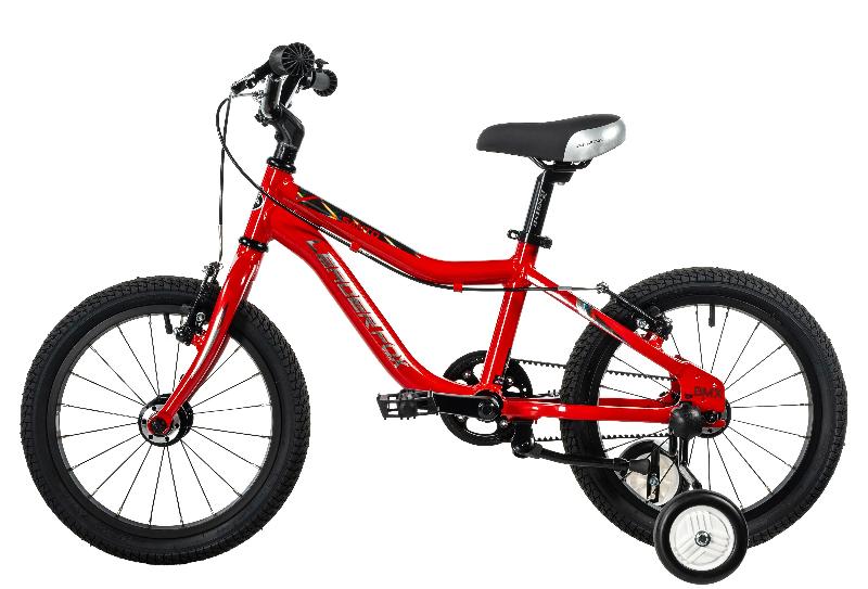 Dětské kolo LEADER FOX SANTO 16 UNI má hliníkový rám v barvě ČERVENÁ, kola 16 palců, přehazovačku Jednorychlostní převod a brzdy mechanické kotoučové. Odpružení zajistí vidlice pevná .